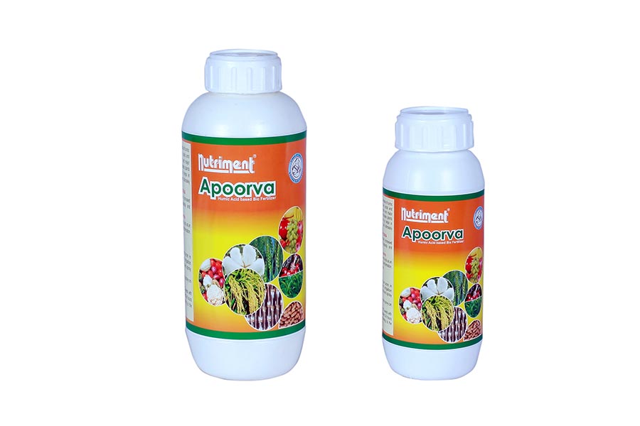 Nutriment Apoorva is water soluble and contains Humic Acid in liquid form for foliar spray. Excellent contains high concentrated humic acid in Liquid form for foliar spray and Apoorva L a high concentrated humic acid coated granules for Soil Application. All enriched with primary nutrients like nitrogen, phosphorus, potassium. Used to keep the plant in good healthy condition & enhance crop yield, non toxic to plants, animals and humans.