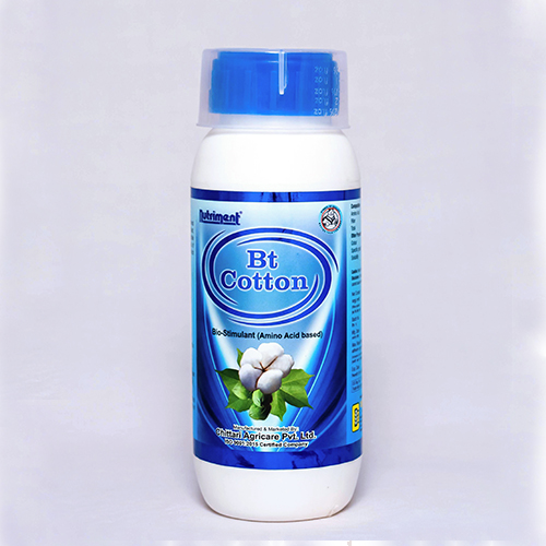 Nutriment Bt COTTON is a biostimulant contains amino acid derived from vegetable source specially recommended for Bt Cotton plant. It contains cereal protein hydrolyzed derived from vegetable source. It is formulated by controlled enzymatic hydrolysis of vegetative origin. It stimulates the secretion of hormones which helps in root initiation, stem growth and proper leaf growth.