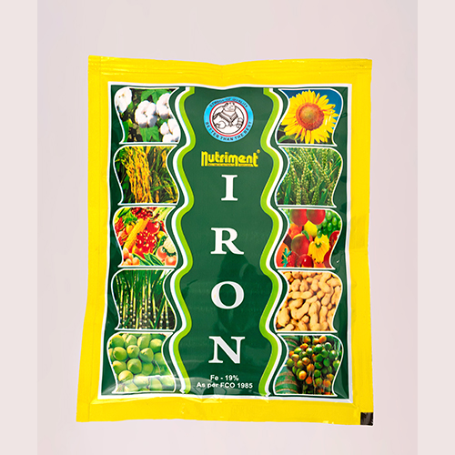 Nutriment IRON [Ferrous Sulphate (FeSO4.7H2O)] contains 19% Iron and 10.5% Sulphur.