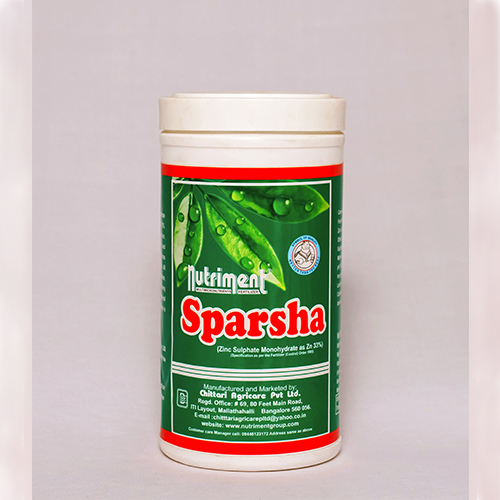 Nutriment SPARSHA [Zinc Sulphate Monohydrate (ZnSO4.H2O)] contains Zinc 33% and Sulphur 16%.