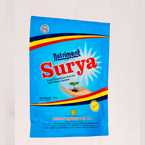 Nutriment SURYA a biostimulant contains mainly made by Humic acid and Potassium combination in powder form. Nutriment SURYA promotes the plant to produce its own beneficial hormones naturally by enhancing nutrient uptake and hormone production through plant roots and leaves.